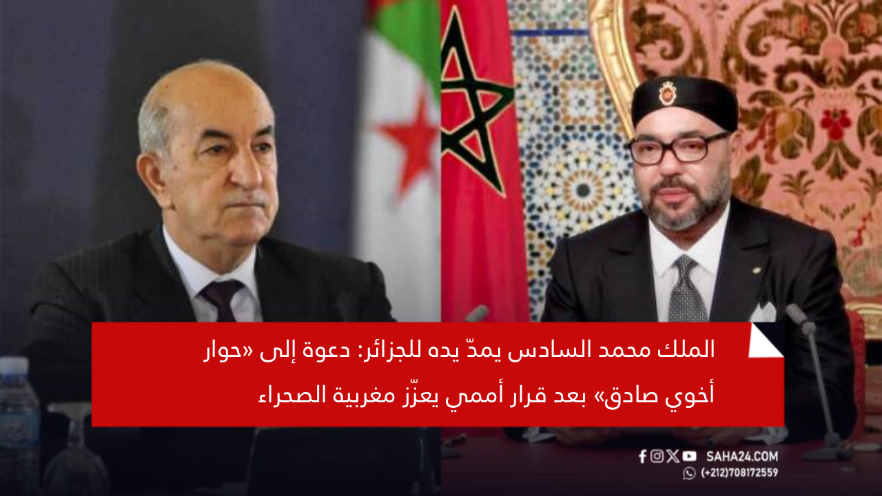 «أدعو أخي فخامة الرئيس عبد المجيد تبون إلى حوار أخوي صادق بين المغرب والجزائر، من أجل تجاوز الخلافات وبناء علاقات جديدة تقوم على روابط الأخوة».