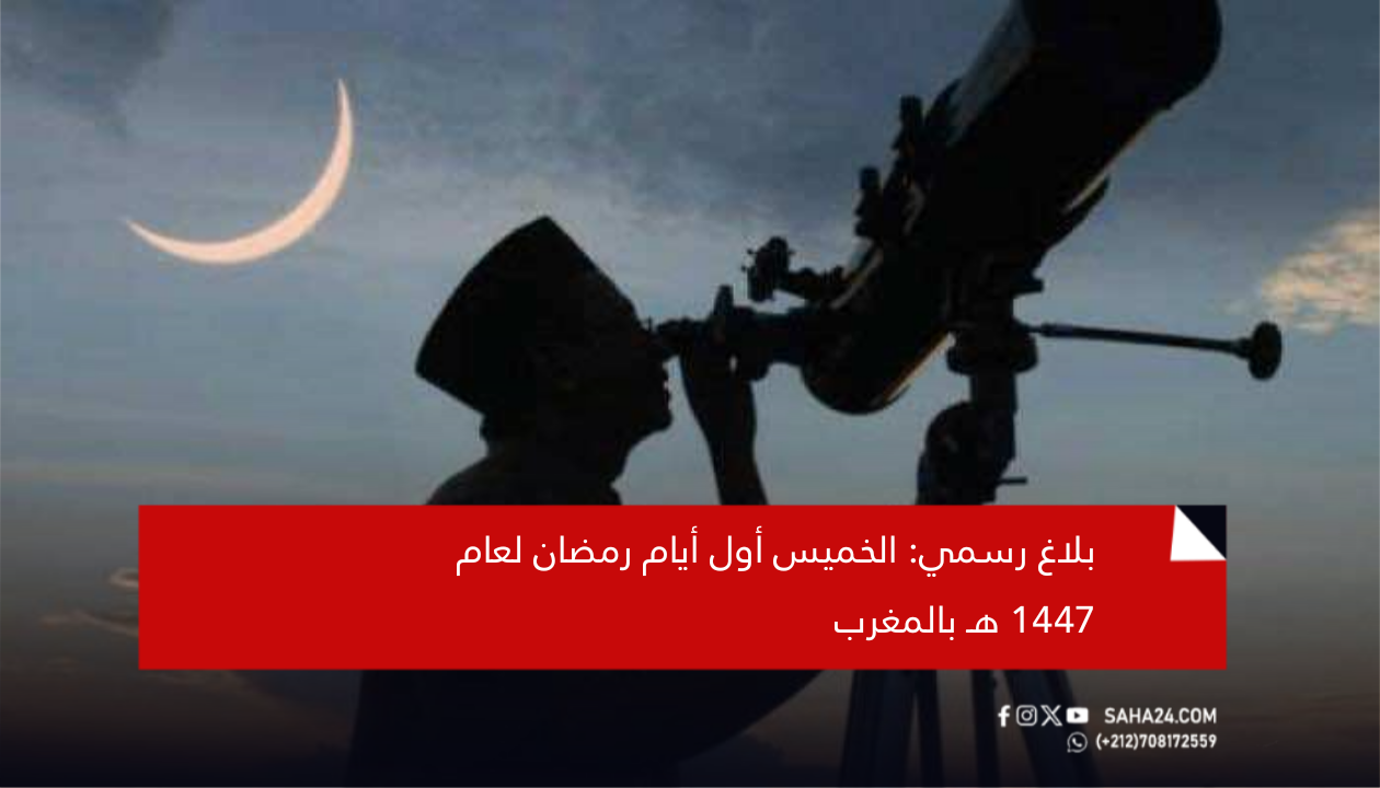 أعلنت وزارة الأوقاف والشؤون الإسلامية، مساء اليوم الأربعاء، أن فاتح شهر رمضان المعظم بالمغرب، لعام 1447 هـ، سيكون غدا الخميس 19 فبراير 2026.