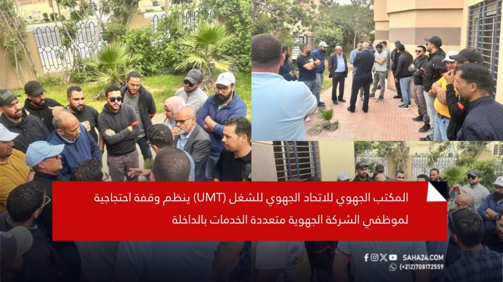 نظم المكتب الجهوي للاتحاد الجهوي للشغل (UMT) وقفة احتجاجية لموظفي الشركة الجهوية متعددة الخدمات بمدينة الداخلة، وذلك تنديداً بما وصفه بوجود ممارسات تدبيرية غير سليمة داخل المؤسسة، واحتجاجاً على عدد من الإجراءات التأديبية التي اعتبرها غير مبررة وتمس بحقوق المستخدمين.
