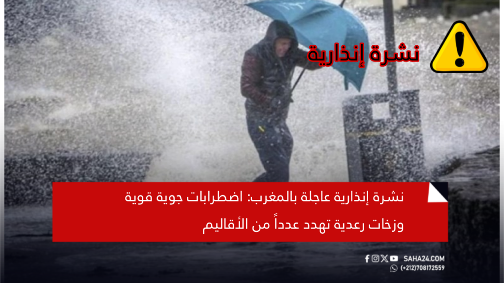 أعلنت المديرية العامة للأرصاد الجوية، اليوم الثلاثاء، عن حالة من الاضطرابات الجوية القوية التي ستهم عدداً من أقاليم المملكة، في نشرة إنذارية من مستوى يقظة برتقالي، ما يثير حالة من الحذر والترقب في صفوف المواطنين، خاصة مع توقعات بظروف مناخية غير مستقرة قد تحمل مخاطر محلية.